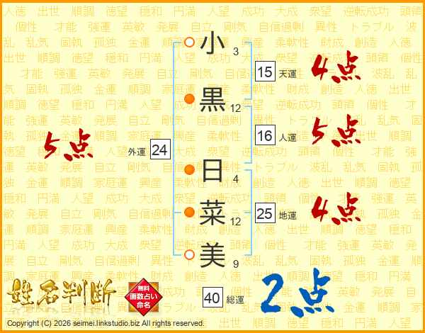 小黒日菜美さんの外運は24画の5点!