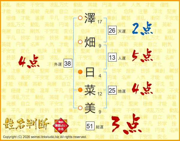 澤畑日菜美さんの外運は38画の4点!