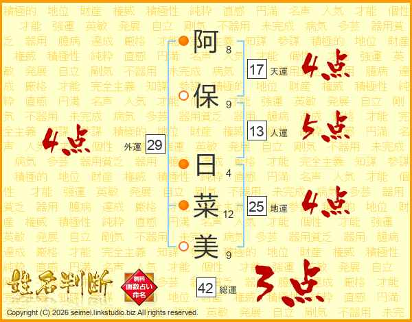 阿保日菜美さんの地運は25画の4点!