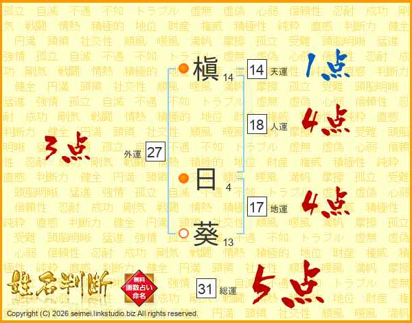 槇日葵さんの総運は31画の5点!