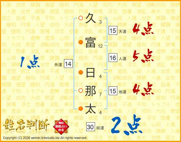久富日那太さんの総運は30画の2点!