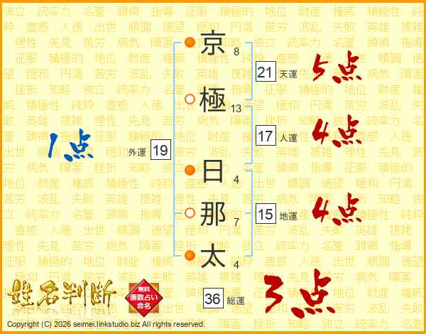 京極日那太さんの天運は21画の5点!