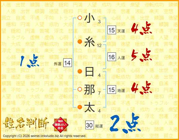 小糸日那太さんの総運は30画の2点!