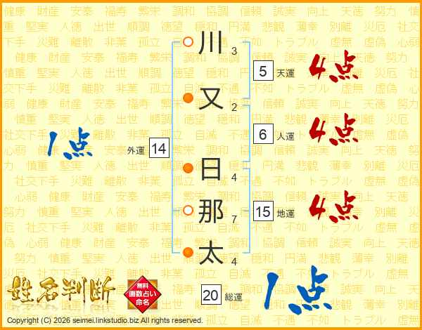 川(3画)又(2画) 日(4画)那(7画)太(4画)