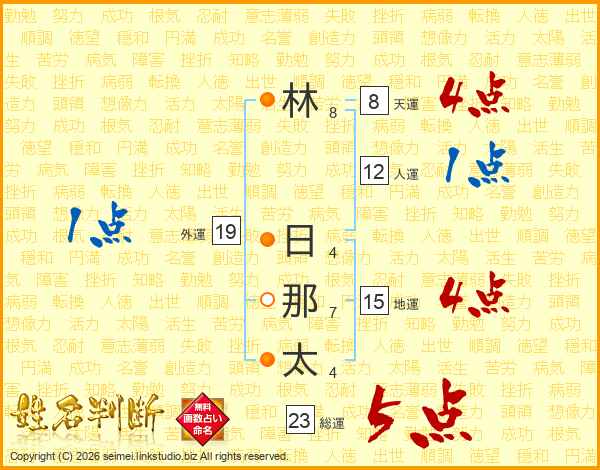 林(8画) 日(4画)那(7画)太(4画)