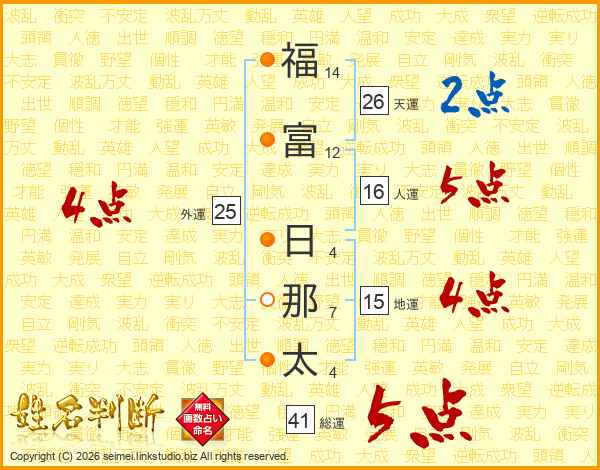 福(14画)富(12画) 日(4画)那(7画)太(4画)