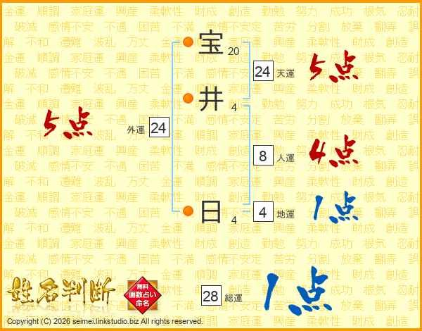 宝(20画)井(4画) 日(4画)