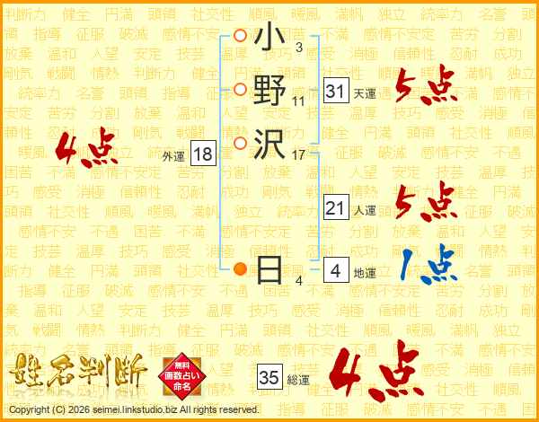 小野沢日さんの総運は35画の4点!