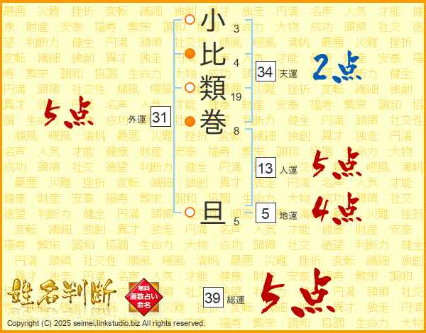 小(3画)比(4画)類(19画)巻(8画) 旦(5画)