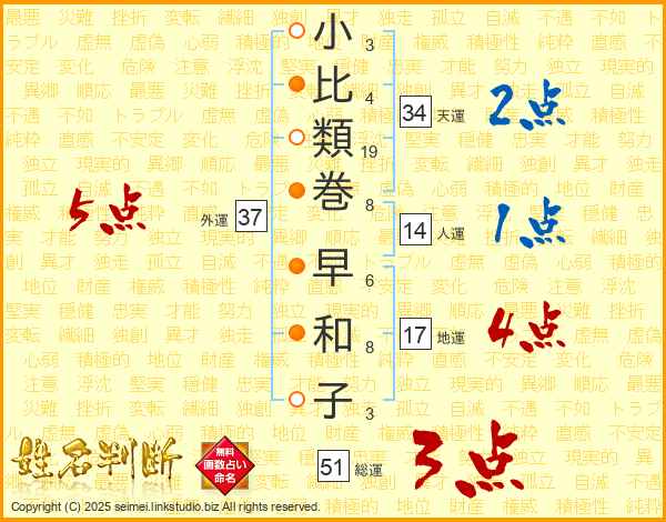 小(3画)比(4画)類(19画)巻(8画) 早(6画)和(8画)子(3画)