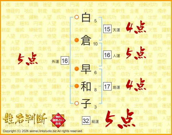 白倉早和子さんの総運は32画の5点!
