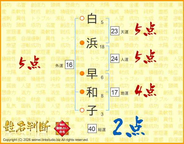 白浜早和子さんの総運は40画の2点!