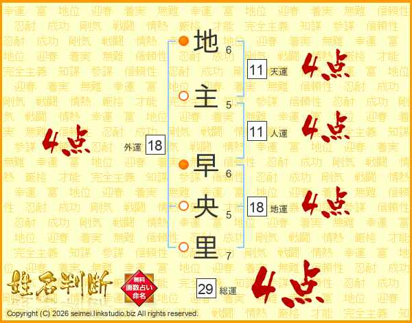 地主早央里さんの天運は11画の4点!