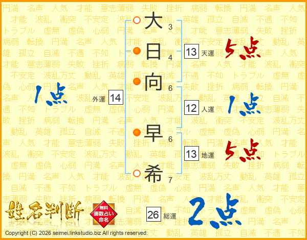 大日向早希さんの総運は26画の2点!