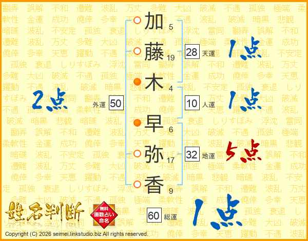 加藤木早弥香さんの総運は60画の1点!