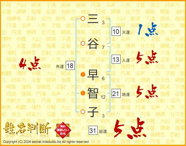 三谷早智子さんの総運は31画の5点!
