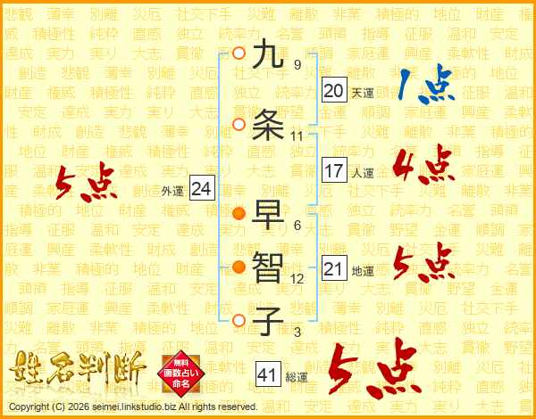 九条早智子さんの総運は41画の5点!