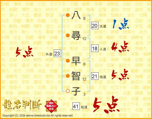 八(8画)尋(12画) 早(6画)智(12画)子(3画)