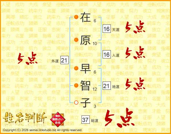在(6画)原(10画) 早(6画)智(12画)子(3画)