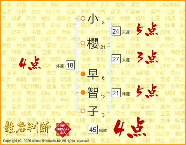 小櫻早智子さんの総運は45画の4点!