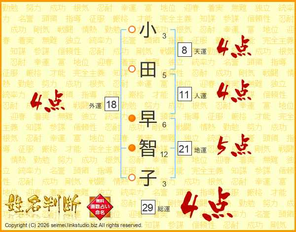 小田早智子さんの人運は11画の4点!