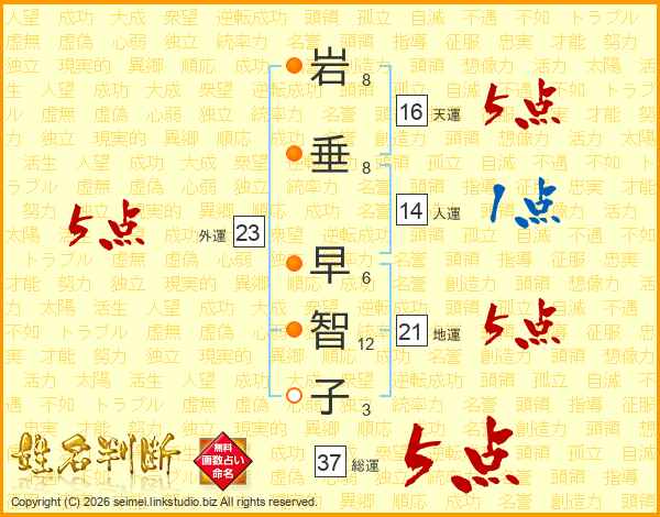 岩垂早智子さんの総運は37画の5点!