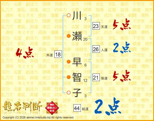川瀬早智子さんの総運は44画の2点!
