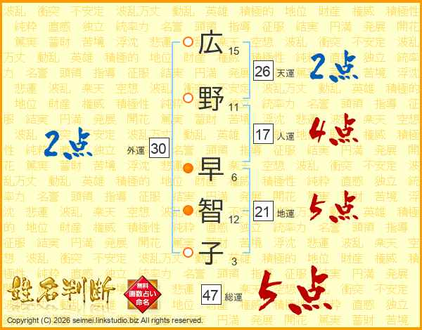 広野早智子さんの総運は47画の5点!