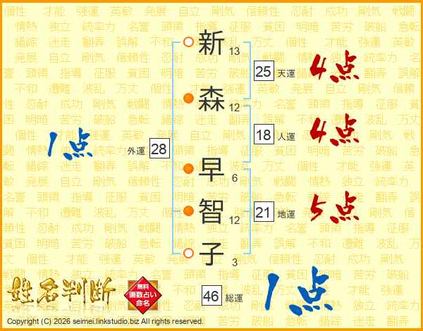 新森早智子さんの天運は25画の4点!
