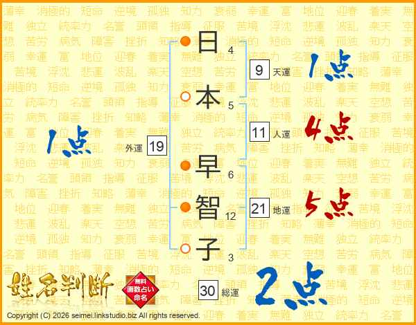 日本早智子さんの地運は21画の5点!