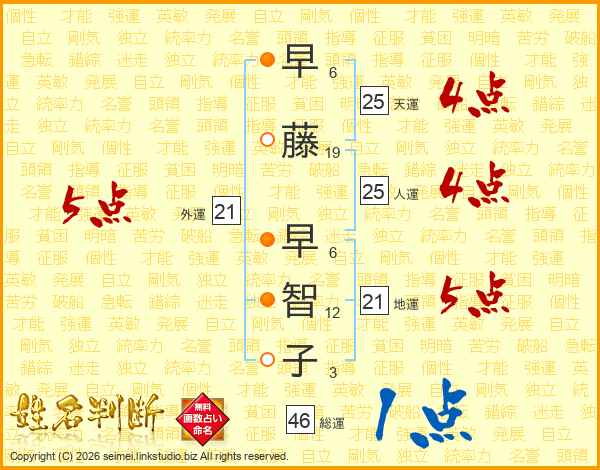 早藤早智子さんの総運は46画の1点!
