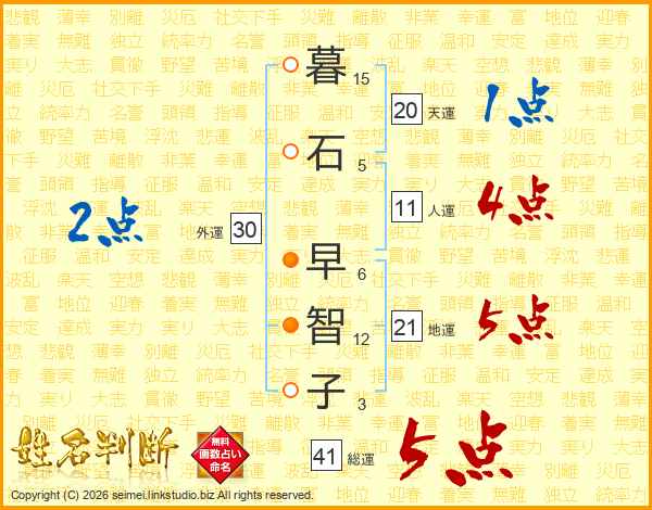 暮石早智子さんの総運は41画の5点!