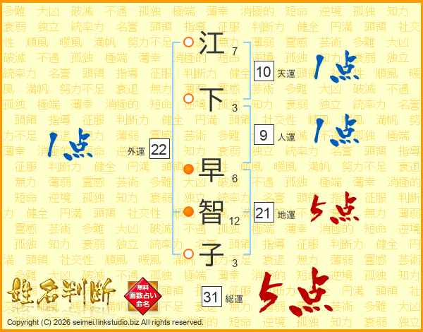 江下早智子さんの総運は31画の5点!