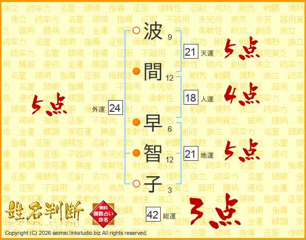 波間早智子さんの天運は21画の5点!