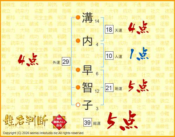溝内早智子さんの総運は39画の5点!