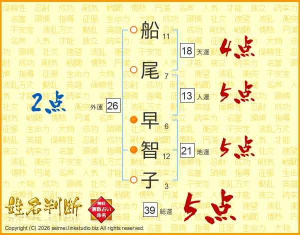船尾早智子さんの総運は39画の5点!
