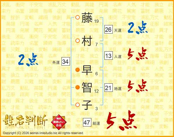 藤村早智子さんの総運は47画の5点!