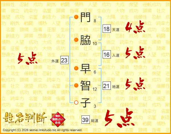 門脇早智子さんの外運は23画の5点!