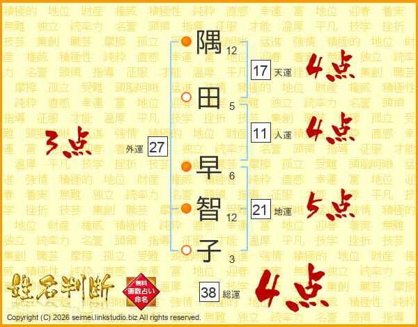 隅田早智子さんの総運は38画の4点!