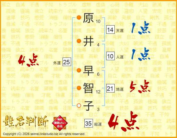 原(10画)井(4画) 早(6画)智(12画)子(3画)