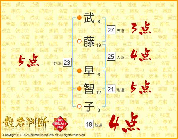 武(8画)藤(19画) 早(6画)智(12画)子(3画)