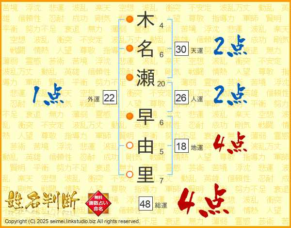 木名瀬早由里さんの天運は30画の2点!