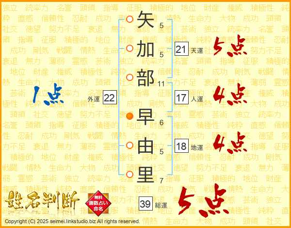 矢(5画)加(5画)部(11画) 早(6画)由(5画)里(7画)