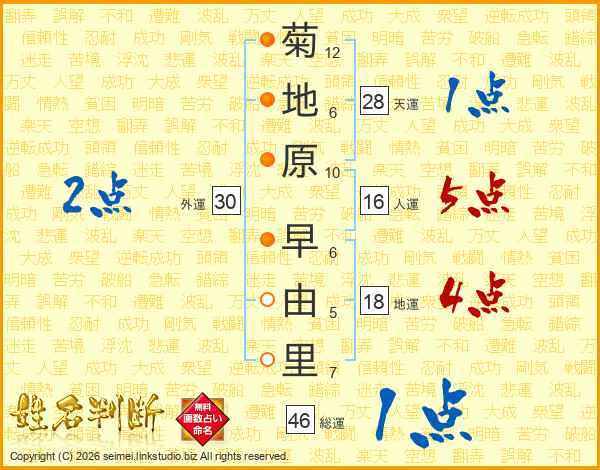 菊(12画)地(6画)原(10画) 早(6画)由(5画)里(7画)