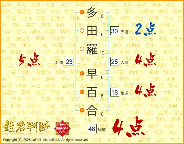 多田羅早百合さんの総運は48画の4点!