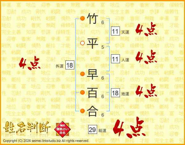 竹平早百合さんの外運は18画の4点!