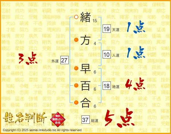 緒方早百合さんの総運は37画の5点!