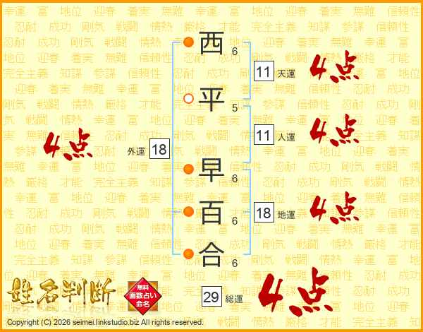 西平早百合さんの外運は18画の4点!