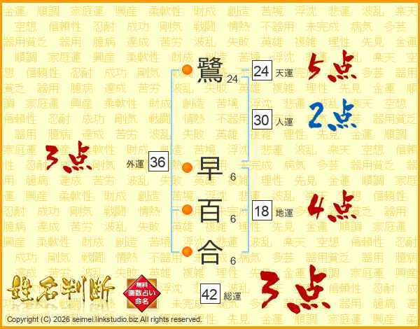 鷺早百合さんの外運は36画の3点!