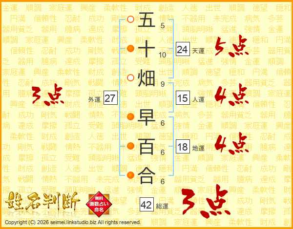 五十畑早百合さんの総運は42画の3点!